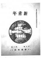 19.1920年,《新青年》第八卷第一期的封面(右图)设计很好地体现了全新的编辑意图:封面正中是一个地球,从东西两半球伸出两只有力的手,紧紧相握。这反映出