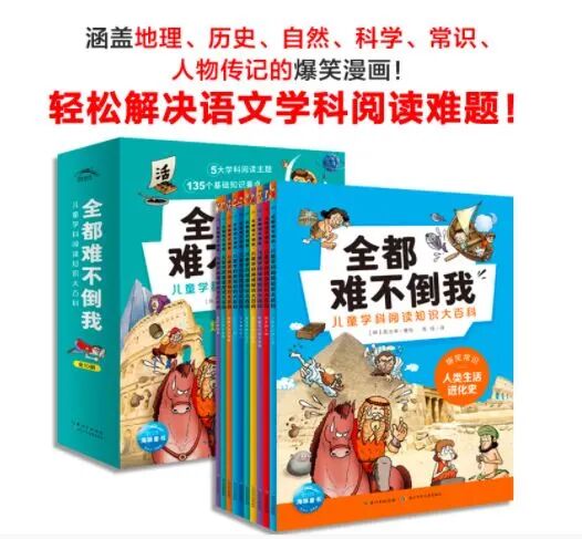 这套书从大语文全学科阅读角度,用漫画的形式将历史、地理、科学、生物、常识等200多个小学知识内容融入到生动有趣的故事中,帮助孩子了解各个学科,培养学习兴趣。
