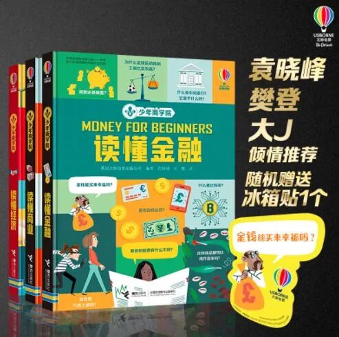 英国Usborne专为孩子出版的《读懂金融》《读懂商业》《读懂经济》,这三本内容会更丰富,通过故事化案例+通俗化理论,介绍了货币、银行、消费与投资、政府和货币等金融知识,学习投资策略,探讨金钱与幸福、不平等的两面性等有深度问题。