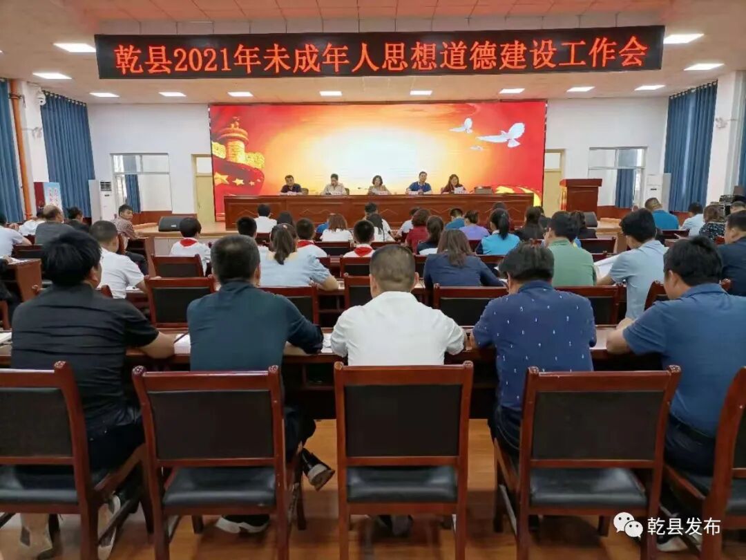 5月27日下午,乾县召开2021年未成年人思想道德建设工作会。县委常委、宣传部长唐彩霞作讲话,县人大常委会副主任郑英主持会议,副县长许超莹,县政协副主席张静妮,文明办,各未成年人思想道德建设工作成员单位分管领导、16个镇(办)党工委副书记,教育系统部分领导、学校校长及受表彰的“美德少年”“新时代好少年”学生代表参加。