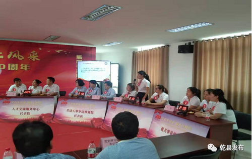 为庆祝建党百年华诞,积极营造学党史、知党情、跟党走的浓厚氛围,增强人社党组织的凝聚力和战斗力,5月27日,乾县人社局举行“学百年党史 展人社风采”党史知识竞赛活动,县委常委、宣传部长唐彩霞,副县长王军战及部分职能部门负责人参加活动并为参赛选手颁奖,人社系统全体职工、各镇(办)社保所所长及同志参加活动。