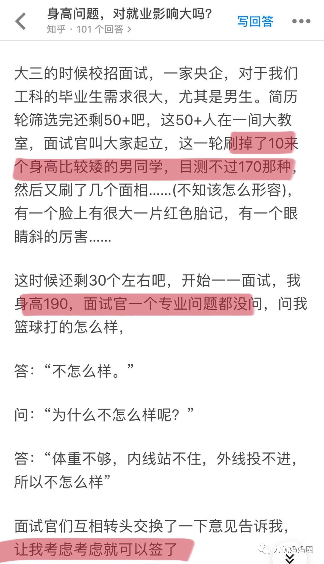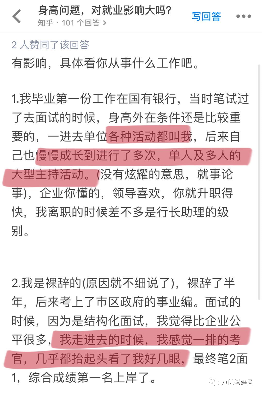 还有网友说了他的经历:因为身高条件好,在单位格外受到关注,锻炼机会多,成长速度快↓