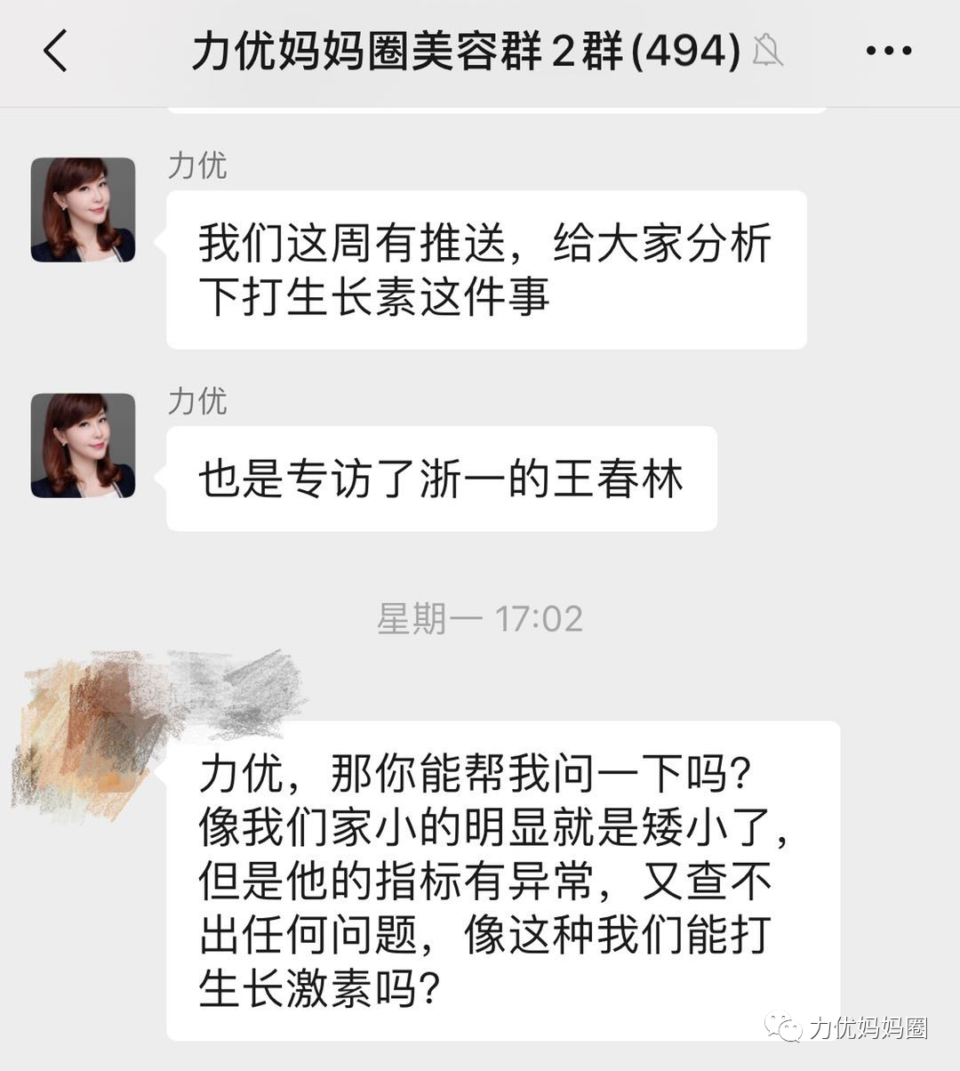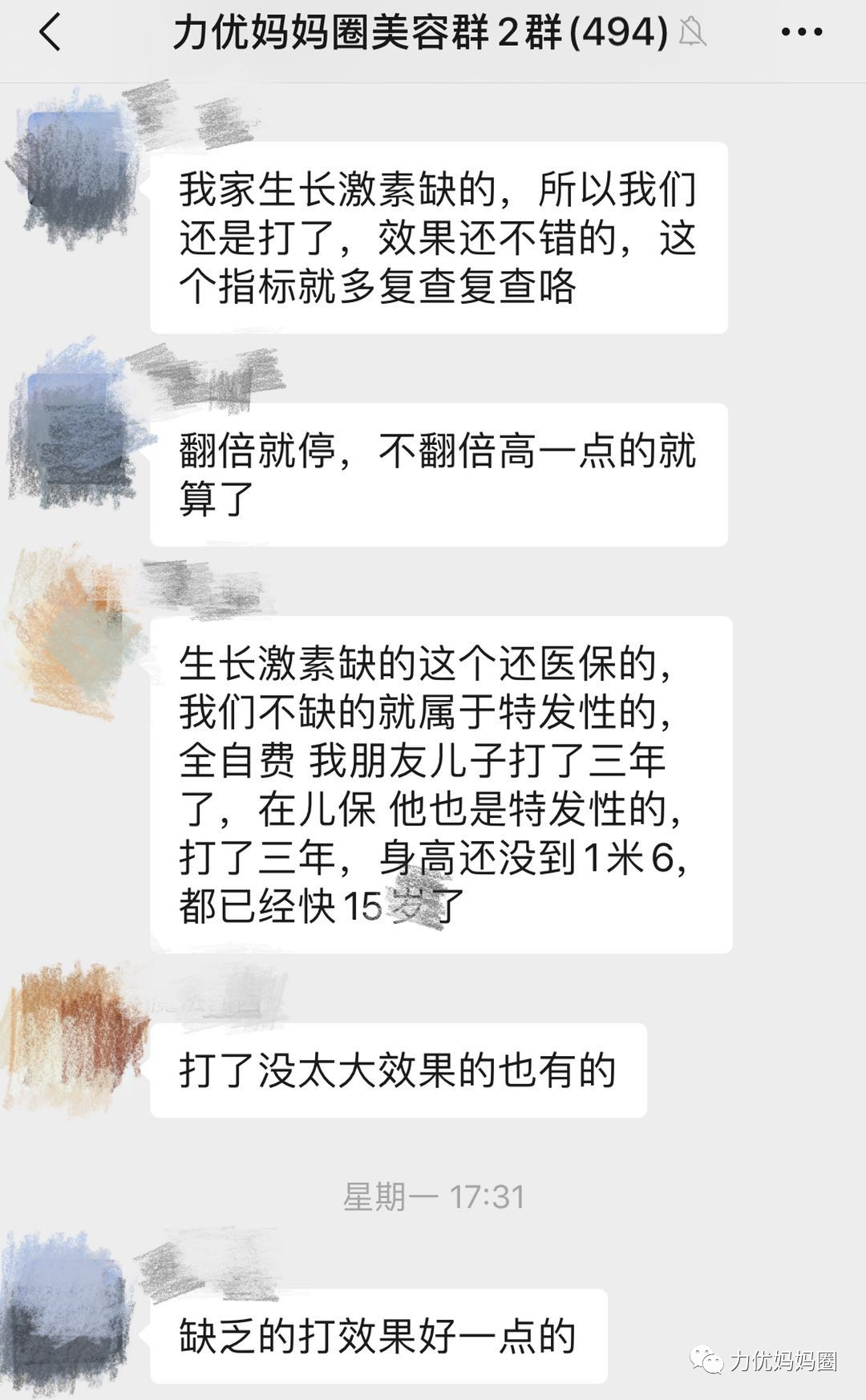 想借助医学干预,用生长激素的话题,在我们群里的关注度也一直很高,时不时就会被大家讨论一番,个子不高的老母亲为了娃的遗传身高简直操碎了心↓
