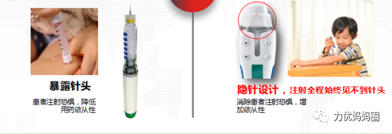 使用配套隐针电子笔注射,操作更简单,使用更方便,适合患儿长期使用。电子化操作,剂量比较精准,注射稳定、速度可调节,可以减轻患者的注射疼痛;隐针结构的设计,注射全程看不见针头,消除患者注射恐惧,增加依从性;电子化操作,使用更简单方便,适合患儿长期使用。
