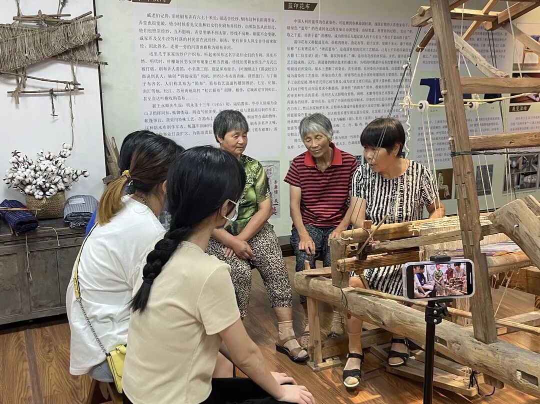 体验活动结束后,大学生们还采访了叶榭筘布纺织技艺的传承人,并且在传承人的指导下体验了织布和纺纱。