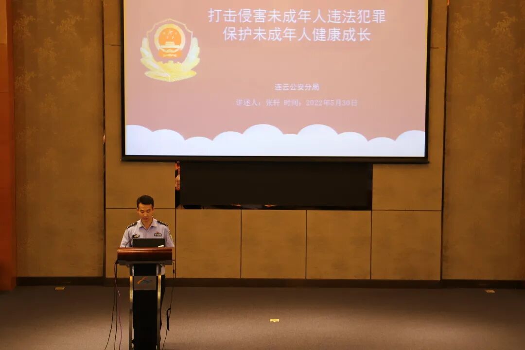 连云公安分局张轩警官通过分析涉未成年人违法犯罪情况,介绍了侵害未成年人犯罪的典型案例及应对方式。