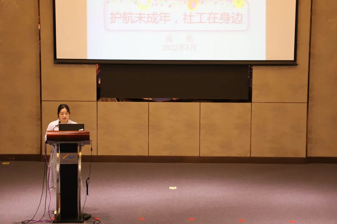 区民政局陈乾以“护航未成年,社工在身边”为主题,讲述了包括“结对共建”“上门服务”等护航未成年人成长社会工作的方方面面。