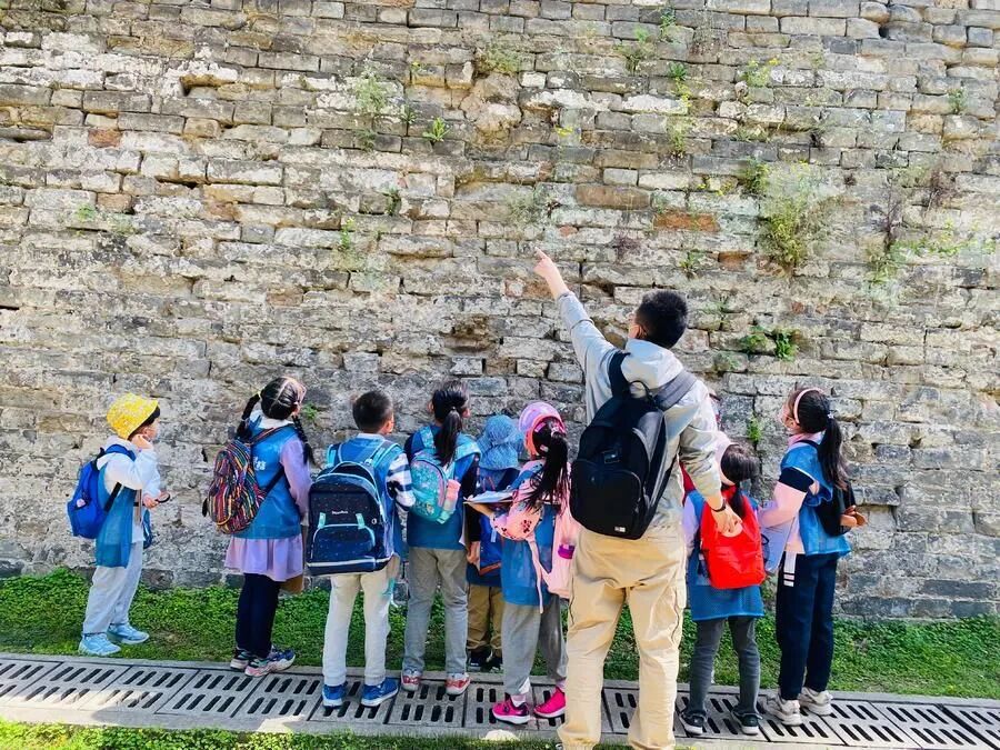 4月,校外辅导站老师组织辖区小学生们寻找古文明足迹,找寻古城墙城砖,借此机会教育小朋友们要保护古迹,争做文明小卫士。