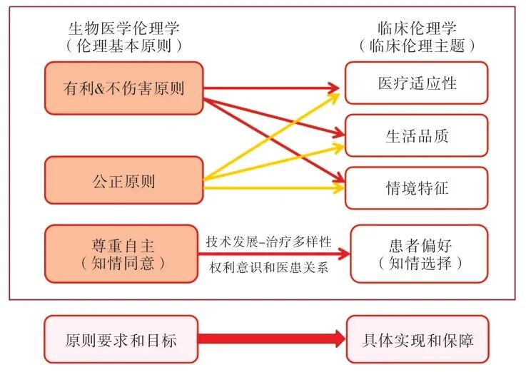 图1 伦理基本原则与临床伦理主题4个象限之间的关系