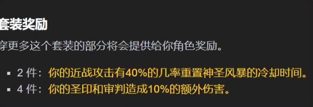 惩戒骑在巫妖王之怒资料片最后一个阶段将迎来DPS高峰,2T10套装特效使近战攻击有40%的几率重置神圣风暴的冷却时间,在高急速装备和惩戒骑神器“瓶中的小憎恶”的加持下战斗中全程转转转根本停不下来。