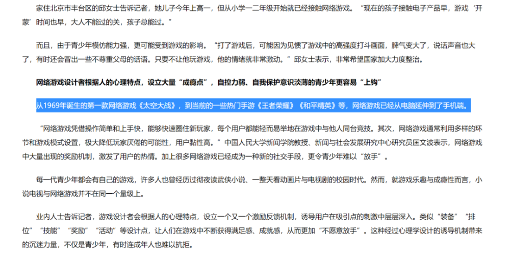发过通知之后的第二天,CCTV13 的新闻又补了一刀,声称「研究表明,长期沉迷网游竟会改变孩子大脑结构」。如果各位对国内游戏产业有过关注,也一定还记得 8 月初《经济参考报》闪现了一篇《「精神鸦片」已长成数千亿产业》,当时给整个游戏圈都吓了个好歹。
