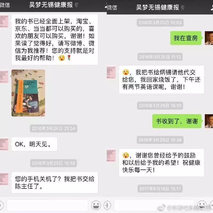 过后我们很少有联系,她写书成为网络红人,也给我捎过书,拿到书我仅翻了下开头几页,她提到了我对她病的诊断,但以后我也没兴趣看下去,也没发微博推荐,也一直没再见面,直到这次她再次怀孕生子。