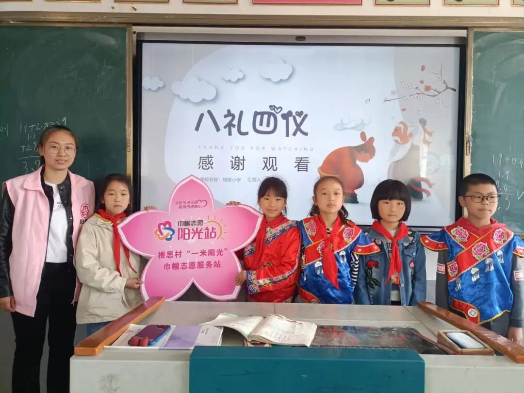 为加强未成年人思想道德建设,引导学生崇德向善、崇尚文明,根思村、鞠顾村在根思小学联合开展了“八礼四仪“宣讲活动。活动通过情境模式,激发大家探索文明礼仪的起源与发展兴趣,倡导同学们做文明礼仪的宣传者、实践者、示范者。在社交礼仪活动中,少数民族学生樊洁唱了一首民歌《陪你一起看草原》把氛围推向高潮。