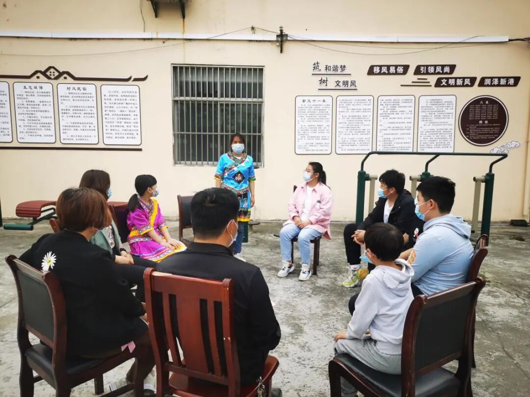 为让未成年人更加了解民族文化,学习少数民族风俗习惯、文化礼仪,新港村邀请在村的少数民族同胞分享各自的年俗。“二十五做豆腐,二十六打扫屋,二十七泡糯米,二十八打耙耙,二十九种种有,三十夜慢慢撤。”苗族同胞谢慧芳着民族传统服饰用顺口溜讲解苗族过年习俗的一些准备过程。