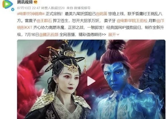 还有一个版本是《封神祸商》,也是网络电影,这些名字都是商量好的吗?已经发出了预告,于7月16日在腾讯播出,看来是2个平台对打啊!