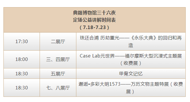 关于延长国家典籍博物馆运营时间的公告,附首周活动(7.18-7.23)预告