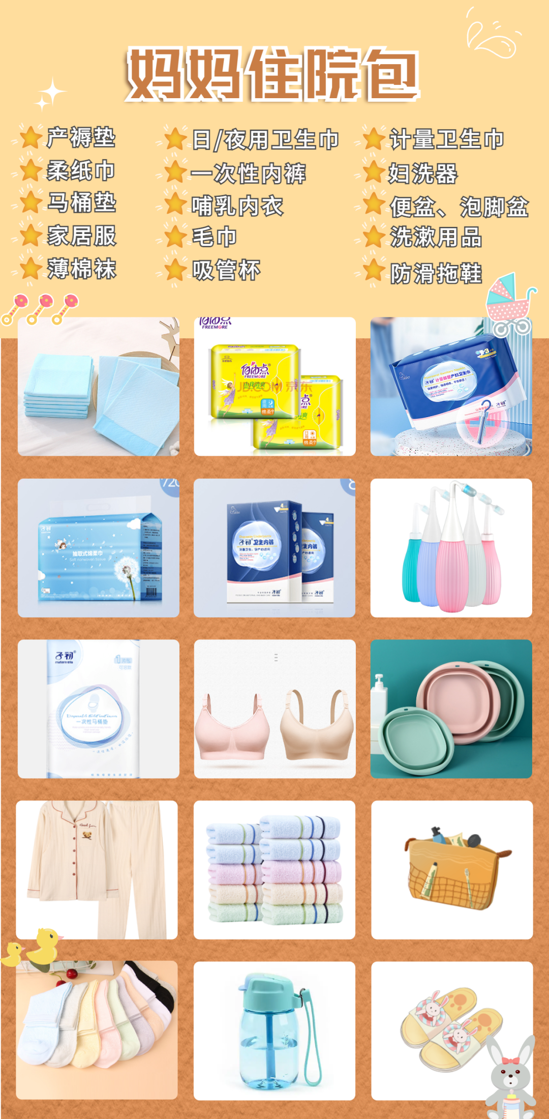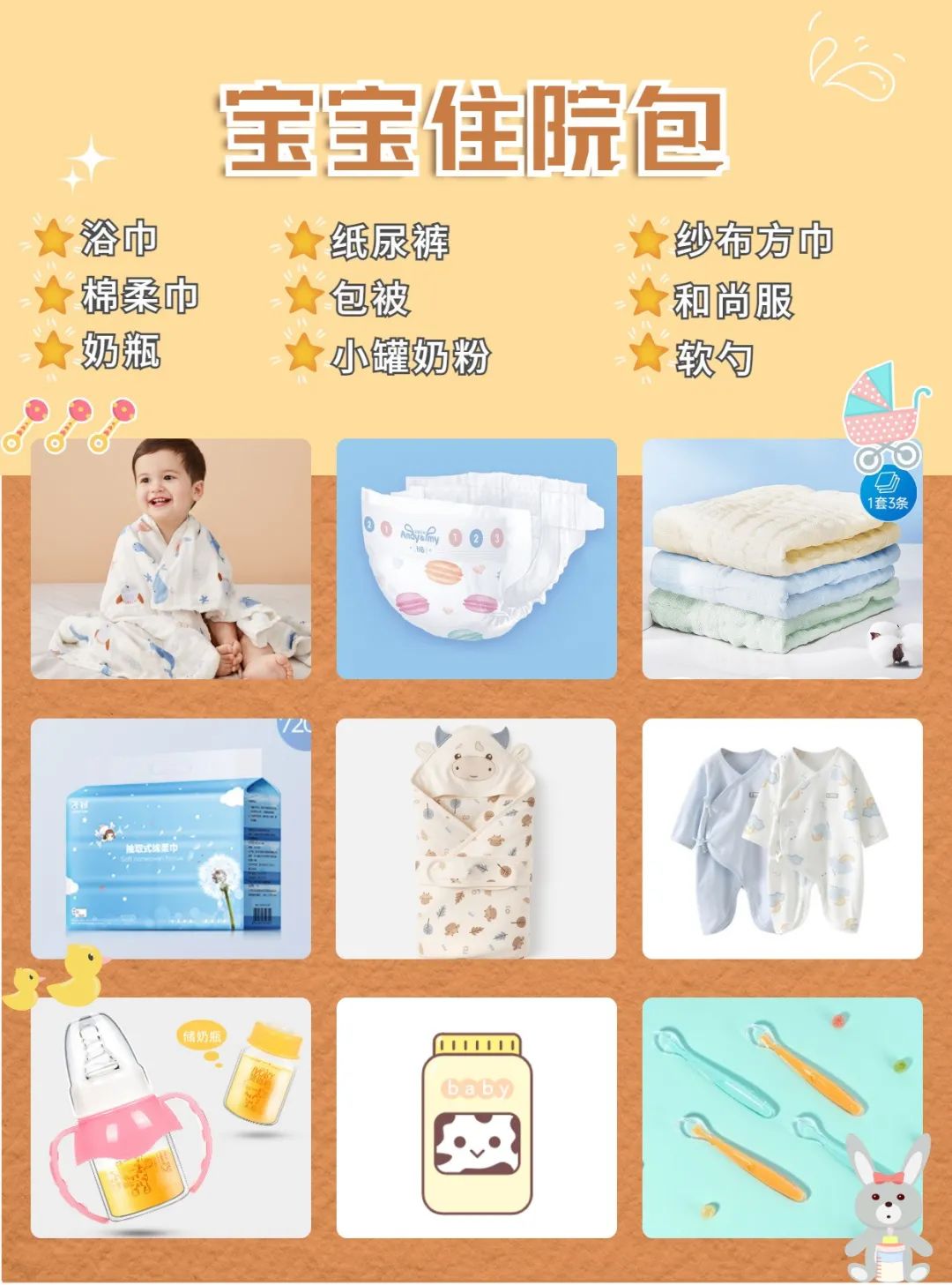妈妈和宝宝住院总共也没几天,别想着把家里囤货什么的都搬过去,整包整包的太多太累了。