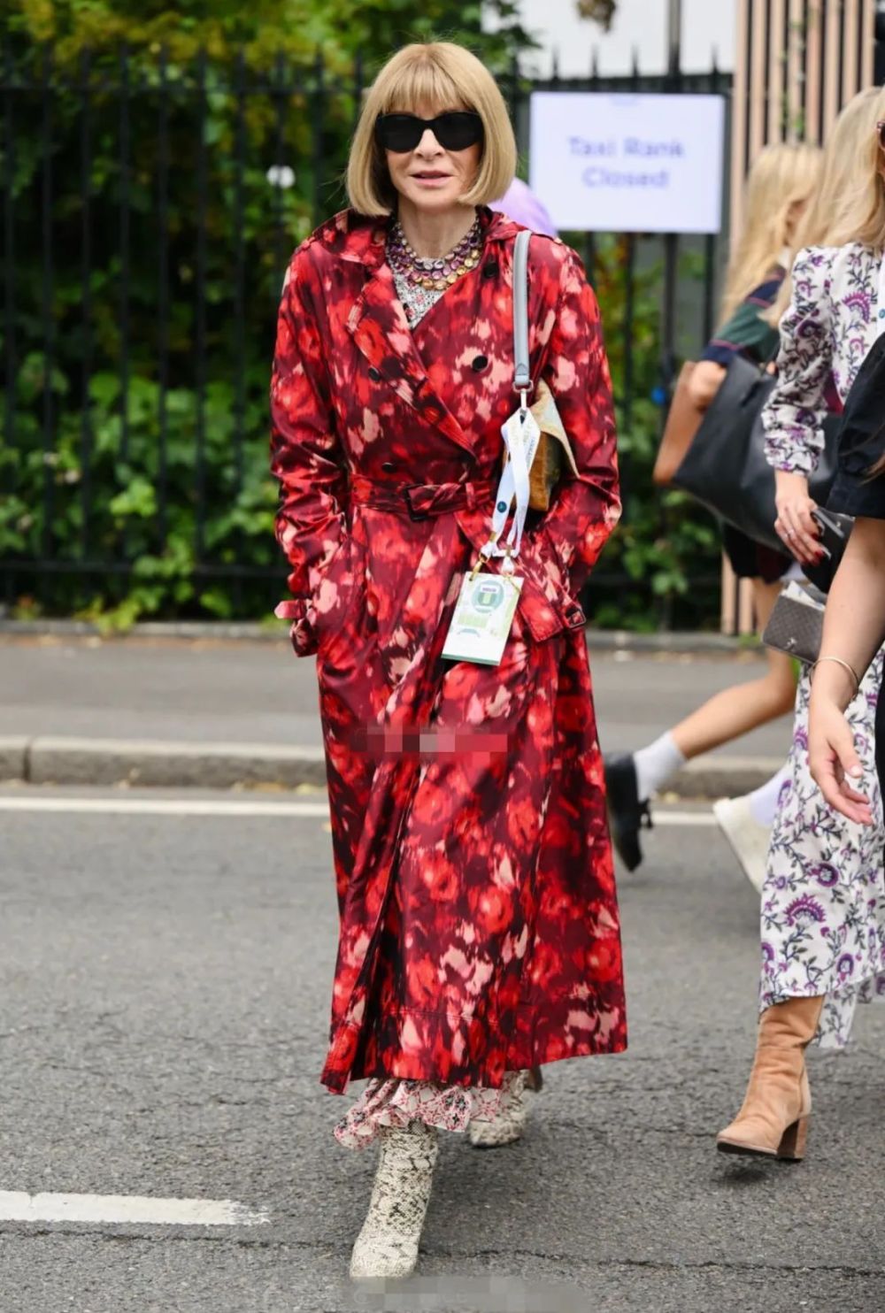 时尚主编安娜·温图尔穿得是真的好花哨,从项链到外套再到鞋子都好“亮眼”,主打的就是一个乱糟糟吗?