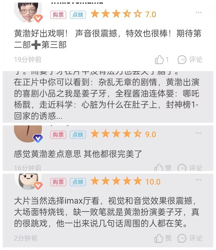 黄渤的喜剧明星形象太过深入人心,又是以原声出演,每每出场都让观众觉得出戏,被网友吐槽像在演“喜剧小品之我是姜子牙”,一开口就让人想笑。