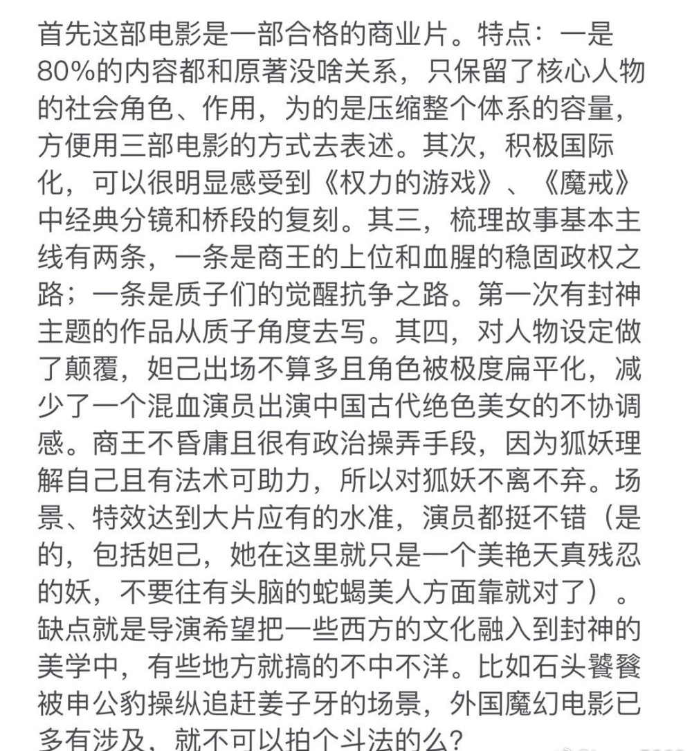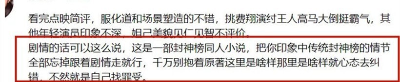观点持有者认为,《封神第一部》作为商业片,是合格的。虽然改编幅度大,基本只保留了原著的核心人物和基础框架,但两条故事线都比较流畅。
