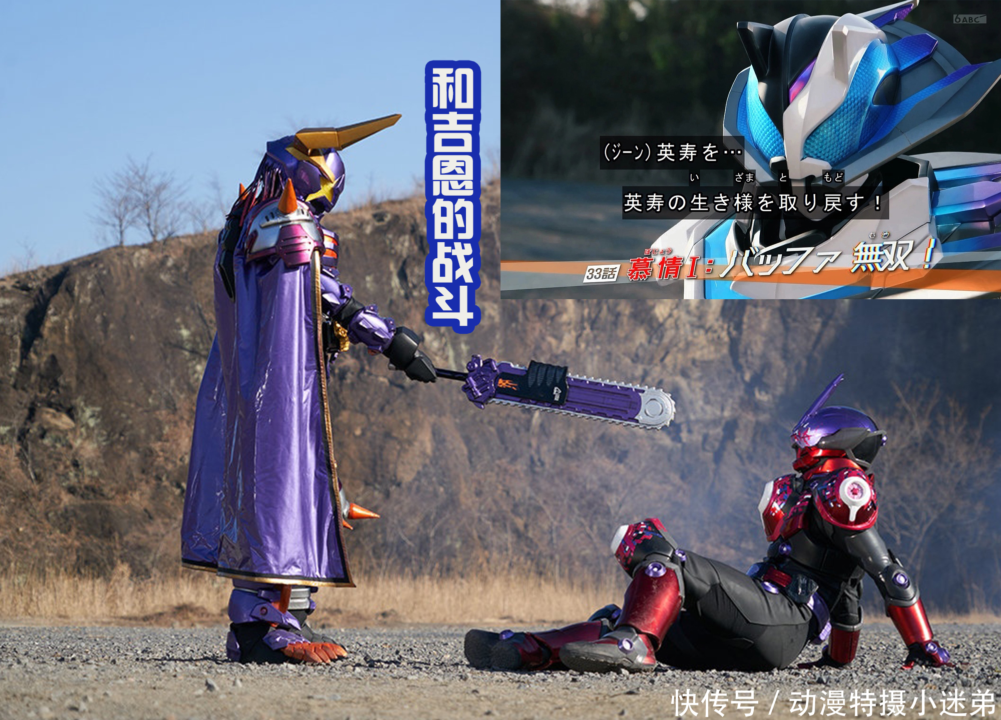 《假面骑士极狐》第33话“慕情:buffa无双”,脚本是高桥悠也,监督是中泽祥次郎。文字剧情的话:霸牛成为了邪魔神,改变了世界,英寿和景和的消息不明,被重写记忆的弥音是鞍马家的千金大小姐。另外一边,为了DGP再开的奇拉米,为了夺取幻视驱动器而召集新的假面骑士,然后被道长察觉到并且发动了“击溃所有假面骑士的力量”,开始狩猎假面骑士吧!光是从这个文字预告中,就能够看出来这次的不同,奇拉米现在已经是DGP的老大了,他的桌面上放这很多ID核心,里面也有太狸、娜猫、霸牛、棕熊等人的,就是不知道他要怎么去召集新的骑士?