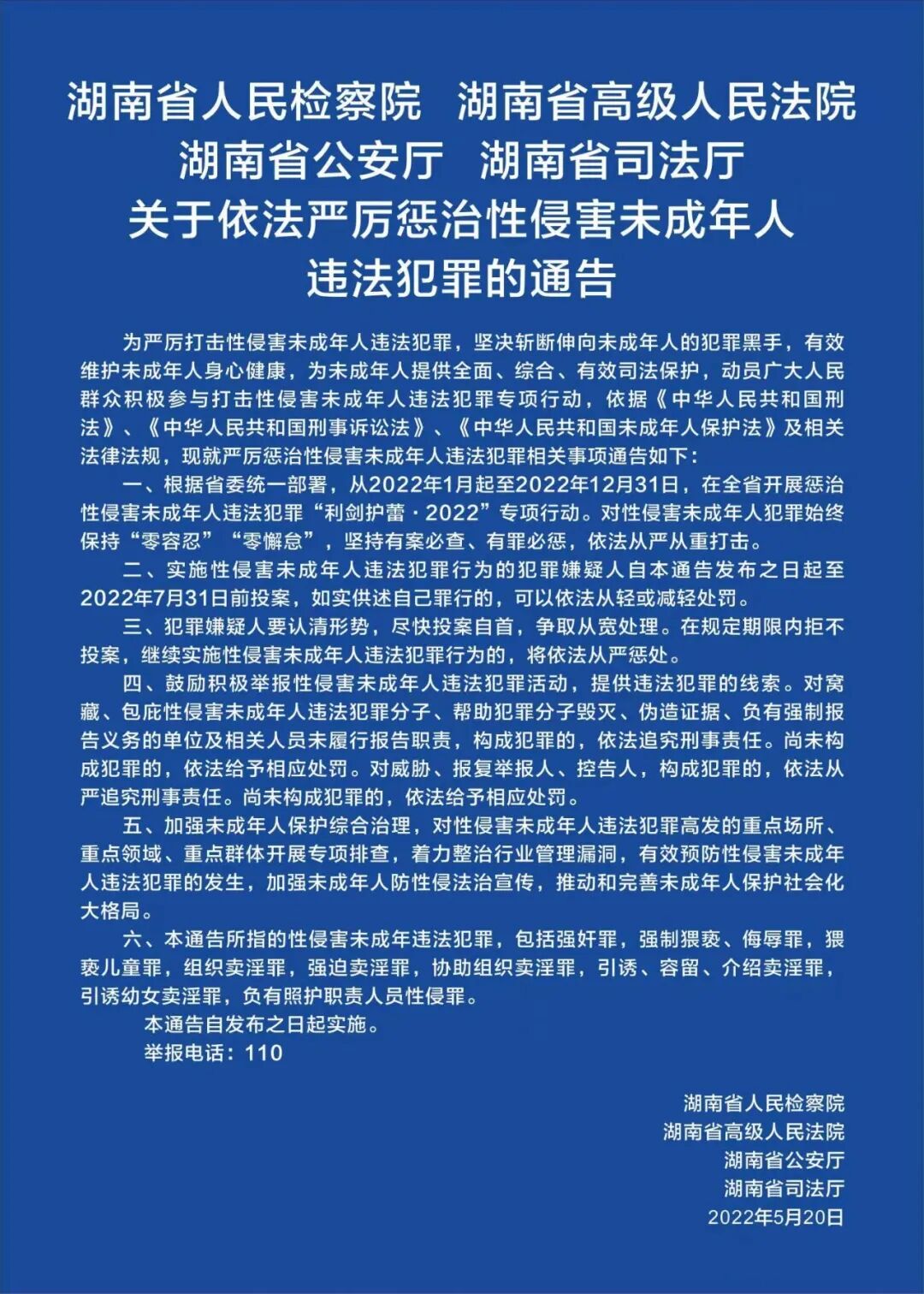 四是深入开展惩治性侵害未成年人违法犯罪“利剑护蕾·2022”专项行动,并结合相关工作积极畅通未成年人法律援助绿色通道;加强对未成年社区矫正对象的监督管理和权益保护;全面排查和稳妥化解涉校涉未成年人类纠纷。为未成年人保护工作注入全面法治保障。
