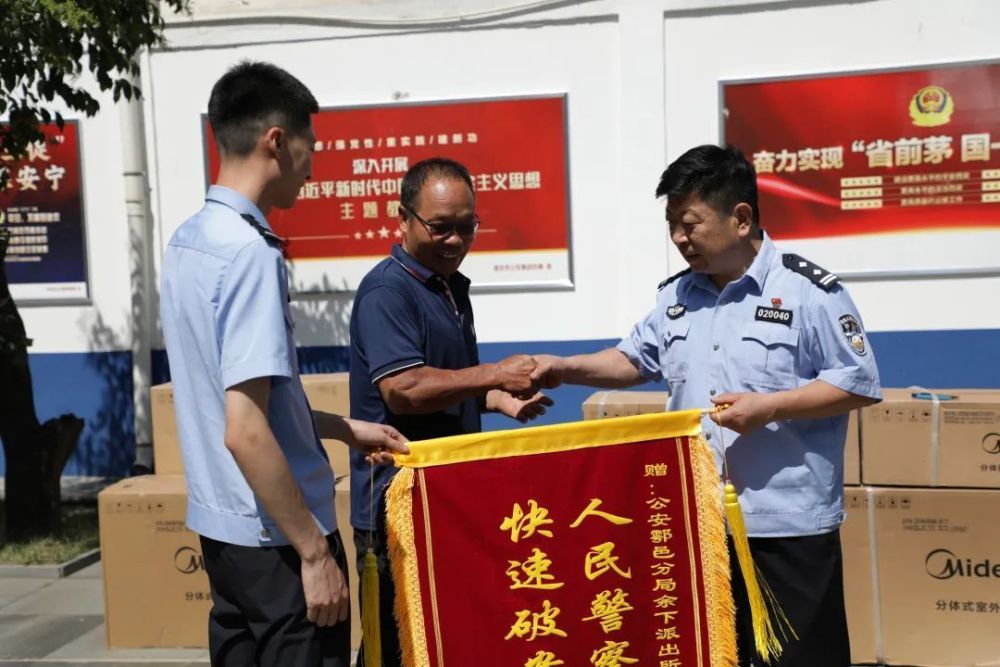 7月17日上午,西安市公安局鄠邑分局余下派出所举行了被盗财物发还仪式,将21台被盗空调如数发还给受害人白先生。发还仪式上,白先生将写有“人民警察为人民 快速破案暖人心”“为民解忧 破案神速”的锦旗交到民警手中,感谢公安民警迅速破案为自己找回被盗财物。#西安头条#