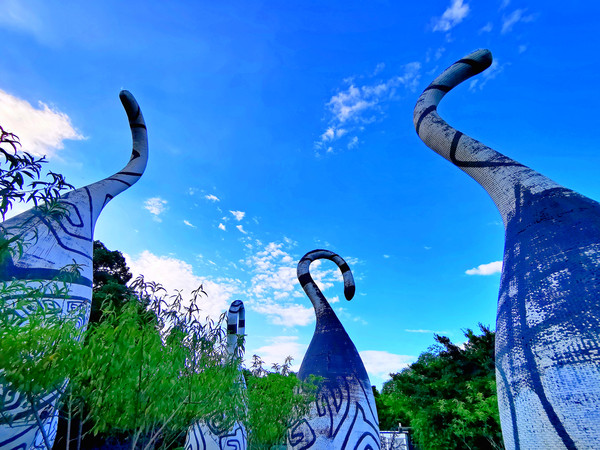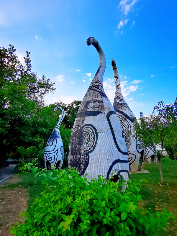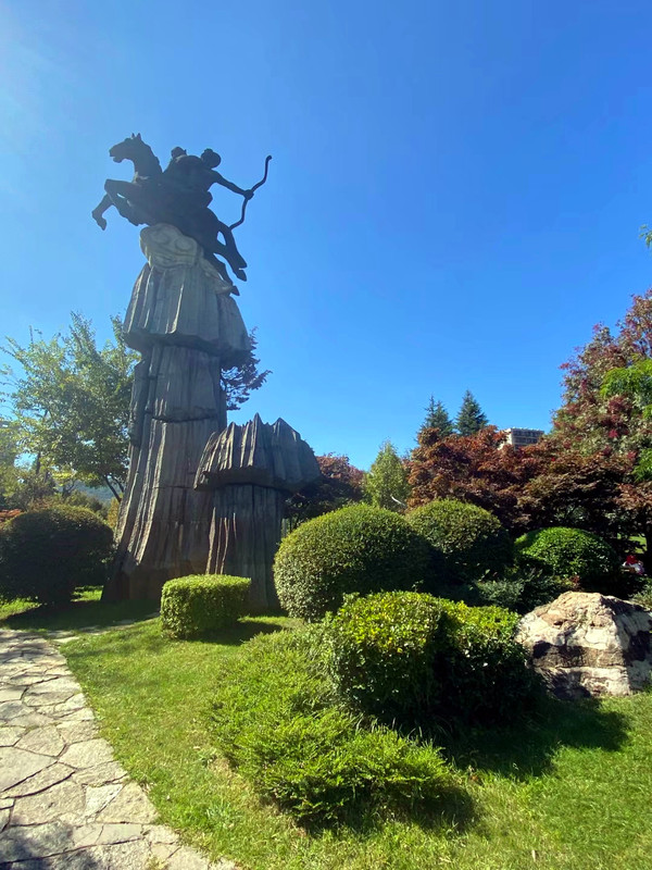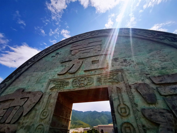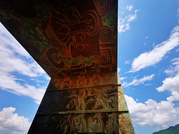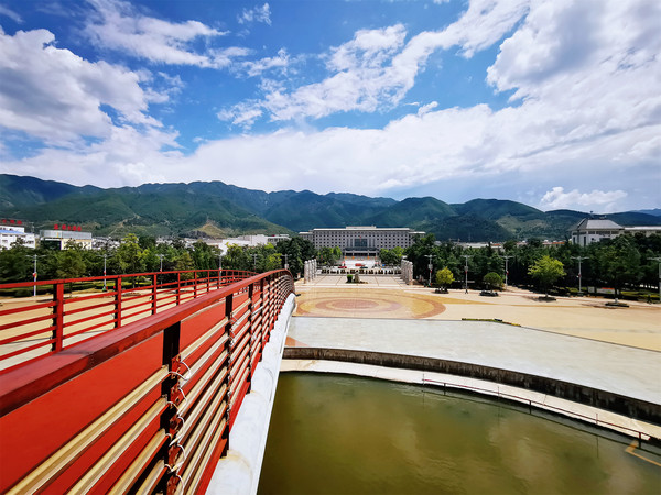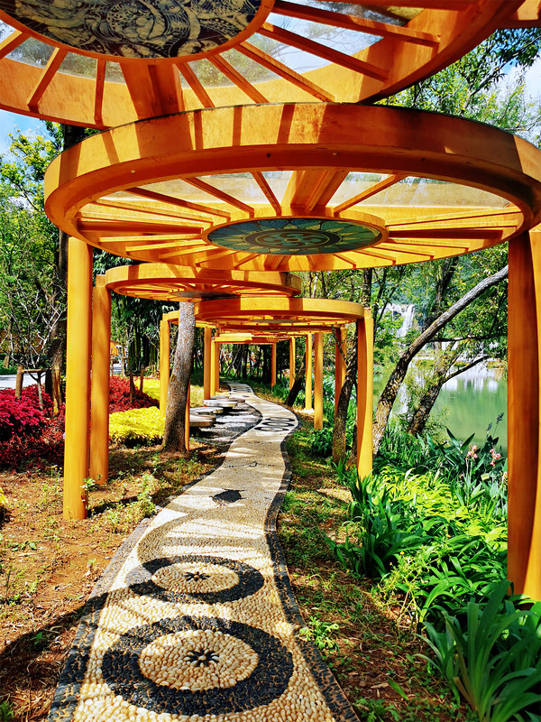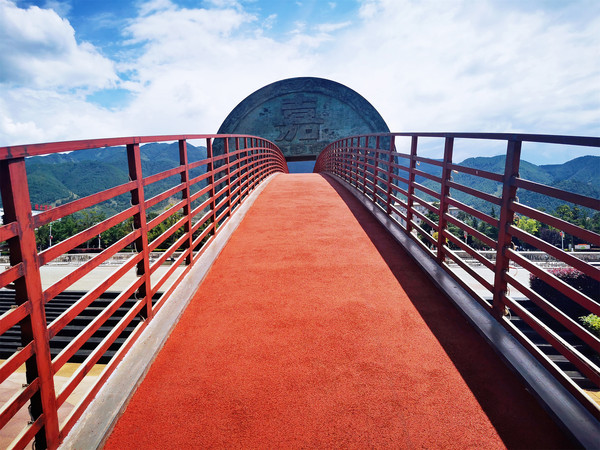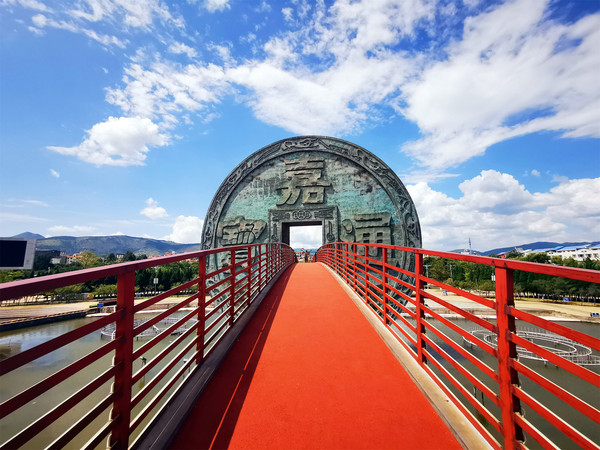 会泽历史悠久,在秦汉时为古夜郎地,清雍正五年置会泽县,至今已有两千多年的历史,1995年被列为云南省历史文化名城,隶属于曲靖市,它有一个响亮的名字——“钱王之乡”,古时会泽县因盛产铜矿,是清朝时期的“中央银行”,铜钱经由驻地各省会馆向全国流通,明代设有铸钱局,在这里开矿开炉采铜铸币,嘉靖年间更是铸出一枚重达41.7公斤的“嘉靖通宝”方孔圆钱,是嘉靖年间会泽铸币局铸造的开炉纪念币,是世界上最大、最重、最厚的金属古钱币,如今公园广场中轴线上的地标性建筑大铜钱便是仿“钱王”原型钱币放大39倍所建,直径为22.6米,重约8吨,是国际著名建筑设计大师谢秉漫教授创意设计,堪称又一世界之最,曾申报过吉尼斯世界纪录。一座流光溢彩的“彩虹桥”跨水而立,桥身轻盈通透,钱眼被一座斜桥贯穿飞越,成了人们“钻钱眼儿”的通道,它屹立于天地间,俯视古今,贯穿未来,象征会泽辉煌的铜业历史,等待来这里游玩的人们体验“钻钱眼”,从“钱眼”里走过是钻钱眼、沾财气的意思,代表着人们想要财源广进、幸福安康的心愿。穿过大铜钱孔,右边有一座塑像,只见一位将军骑着战马,手持宝剑,威风凛凛,这就是名震中外的唐继尧都督,他是滇军的创始者和领导人,出生于会泽,曾为云南的水利、交通、军事等作出很大贡献,如今会泽还有唐继尧的故居,免费对游人开放。
