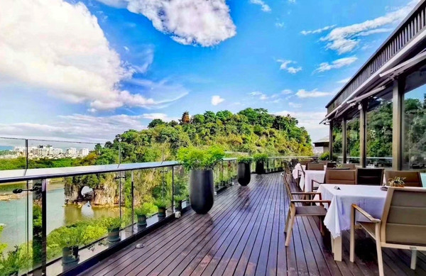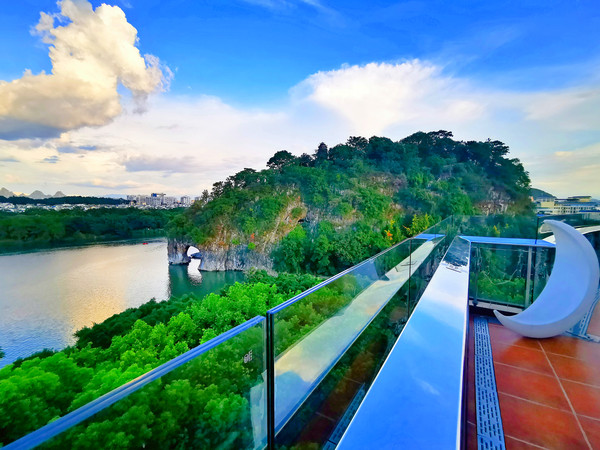 集合亲朋好友,兵分三路,贵阳北站碰头,我这一路从深圳自驾出行,桂林歇脚紧接着直奔贵阳。时隔多年再次来到桂林,这次只是路过停留一晚,所以选择了正对象鼻山的璟象酒店,楼顶露台视野开阔,是和象鼻山近距离同框的最佳网红拍摄点,酒店也有赠送免费旅拍,但效果一般般,酒店到处是象鼻山标志,总台摆有大象装饰,看见家里有小朋友会赠送小象玩偶,房间毛巾的叠法、床头柜摆设等等都离不开大象,还有赠送当地特色罗汉果茶,六楼行政茶室,落地窗外象鼻山尽收眼底。