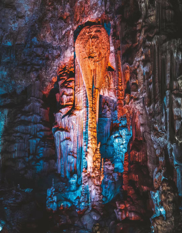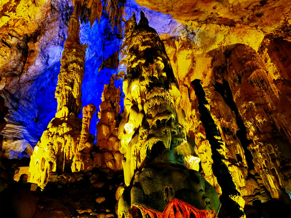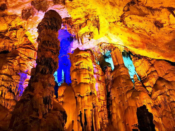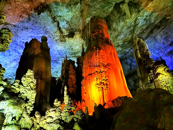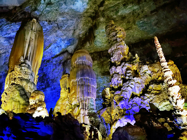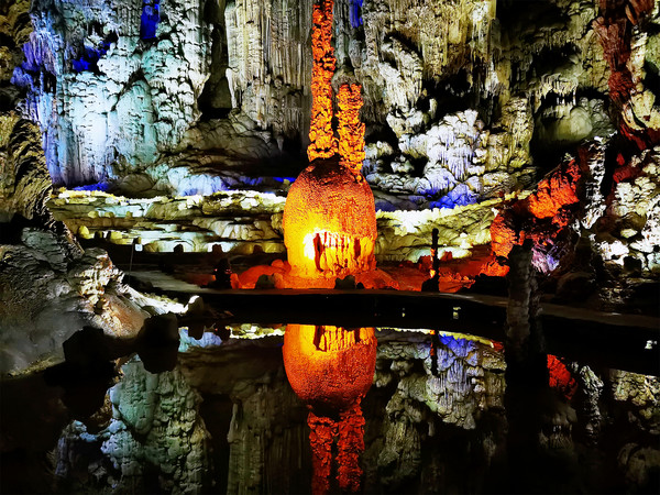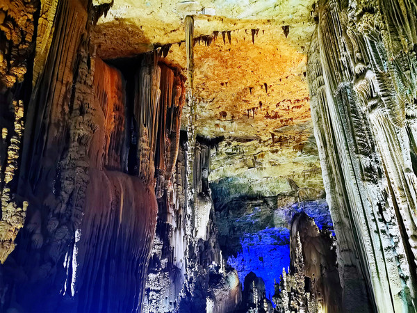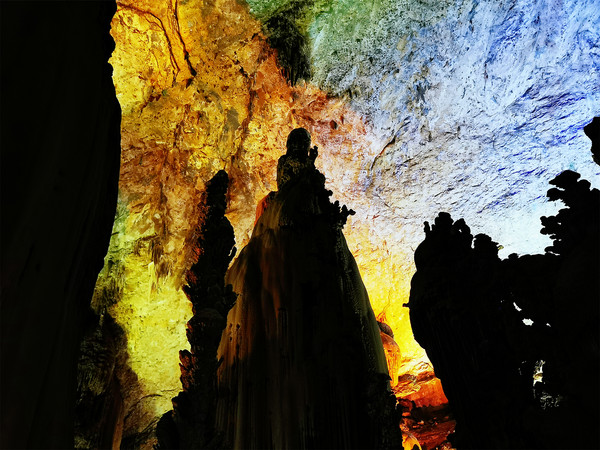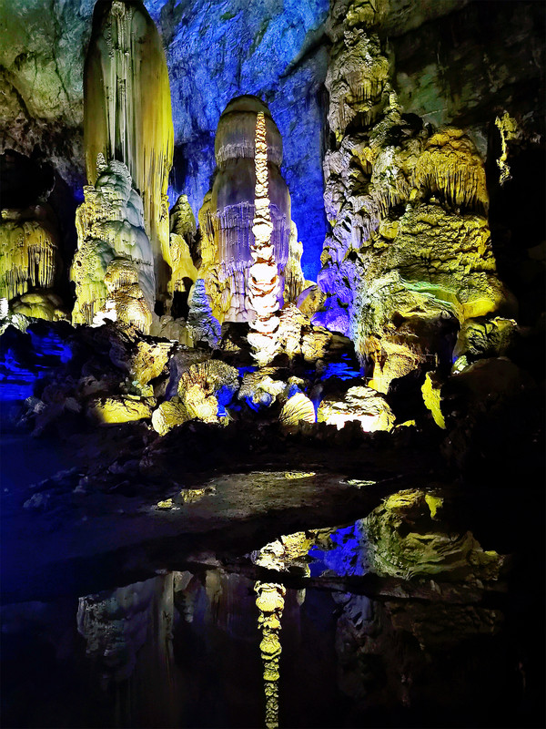 高温天避暑,要么躲进山林,要么跳进水池,还有个选择就是找一个溶洞乘凉,走在洞中就好似身处天然的大冰箱,我们今天就钻进织金洞,开启一次神奇的地心世界探险。“黄山归来不看岳,织金洞外无洞天”,新晋国家5A景区的织金洞被誉为“地下艺术的宝库”和“举世无双的岩溶博物馆”,被《中国国家地理》高度赞誉为“中国溶洞之王”,位居中国最美旅游洞穴之首,被联合国教科文组织列为世界地质公园,有人说织金洞是“地球上最动人的酒窝”,拥有多项世界之最,它囊括了当今世界溶洞的各种沉积形态,整个织金洞现已开发的部分容积500多万立方米,景观多达3000多处,但依然还有很多区域尚待开发,这里是夏季的天然空调房,气温12度,湿度80%,PM值归零,亿万年沧海桑田成就溶洞奇观,即便我再不爱游溶洞也要为其点赞!来到这里,像是走进了一个神奇的地心世界,洞道纵横交错,石峰四布,流水、间歇水塘、地下湖错置其间,溶洞天然渗水,上下台阶上微微湿滑,全程6.6公里不走回头路,这个庞大的洞府迷宫的壮观和隽美,无以言表,面对无数二十几层楼高、穿越亿万年而成的钟乳石柱,只有身临其境才能感受人类如此渺小,雄伟壮观的“霸王盔”,秀逸精巧的“银雨树”,形态优美的“倒挂琵琶”……走出洞外只觉得恍然如梦,世上才半日,洞中已万年。