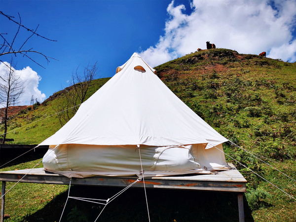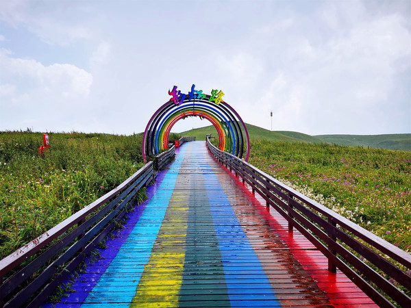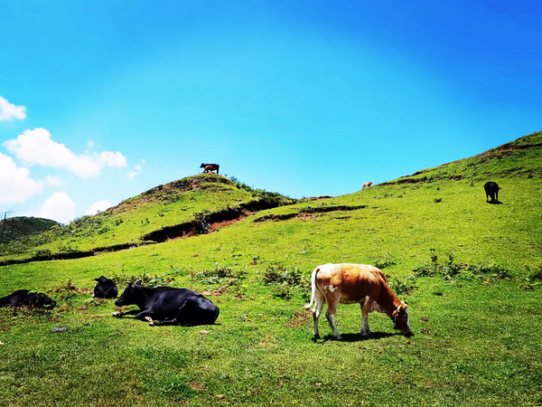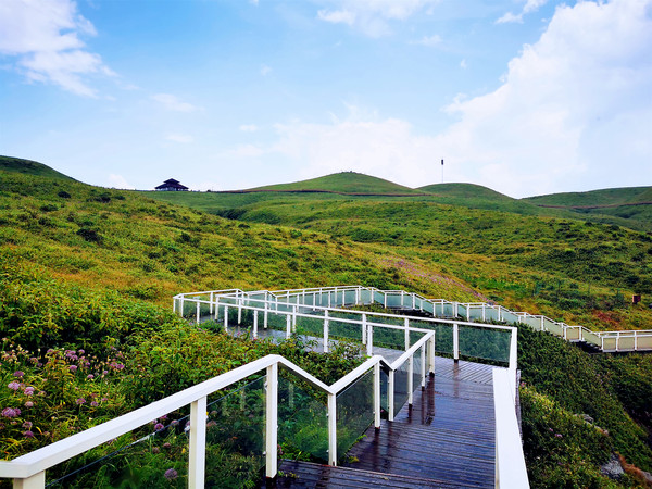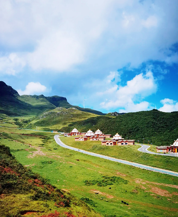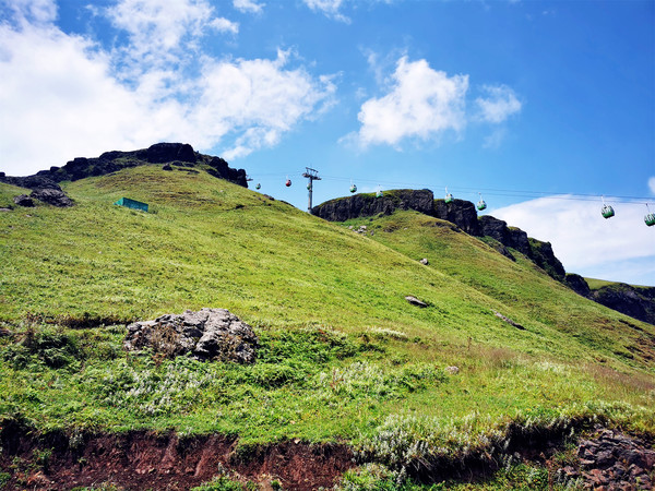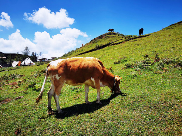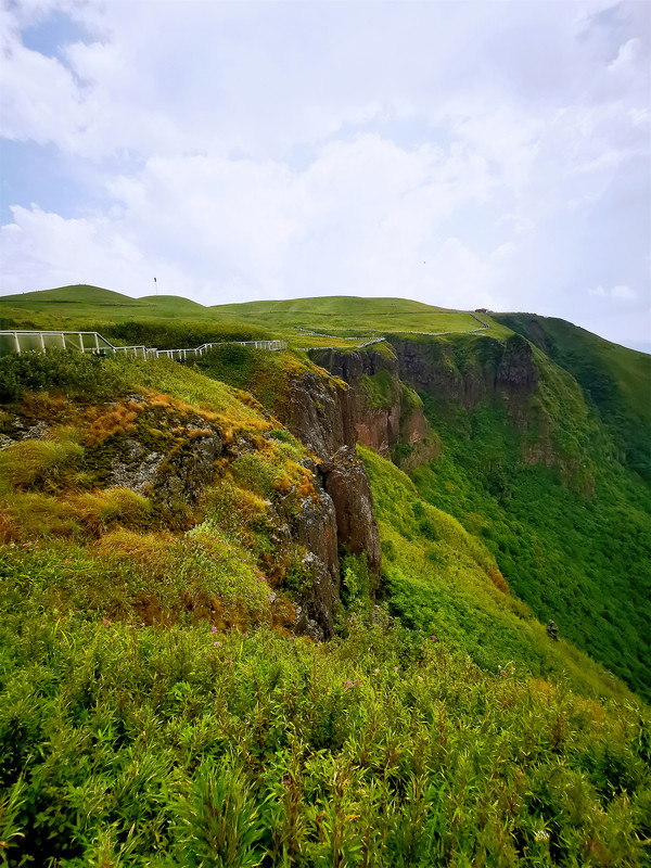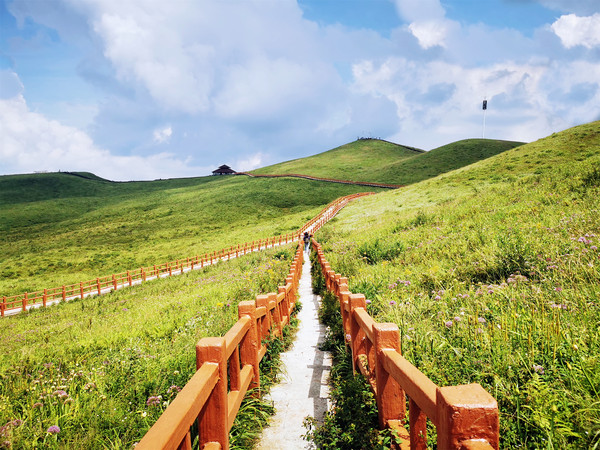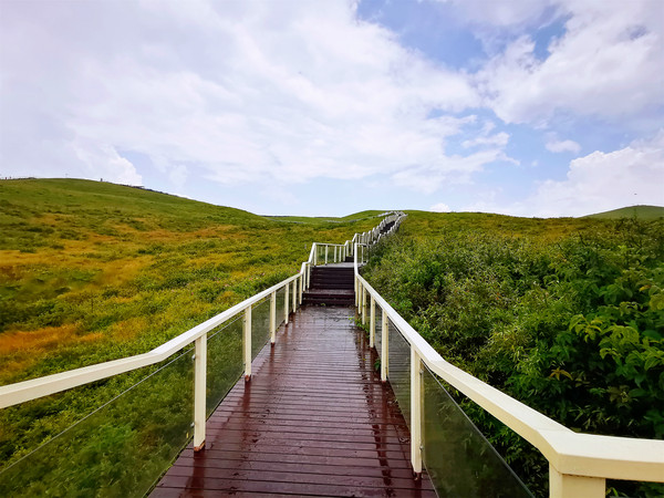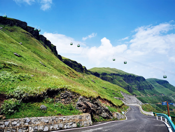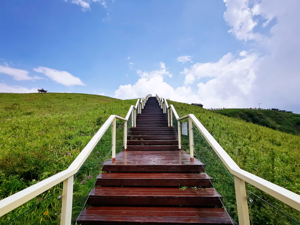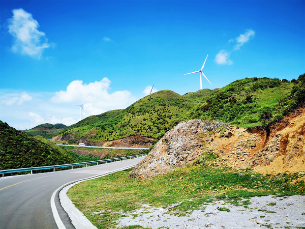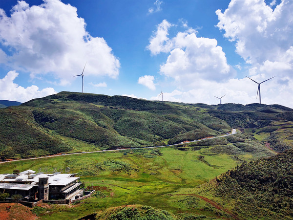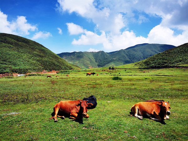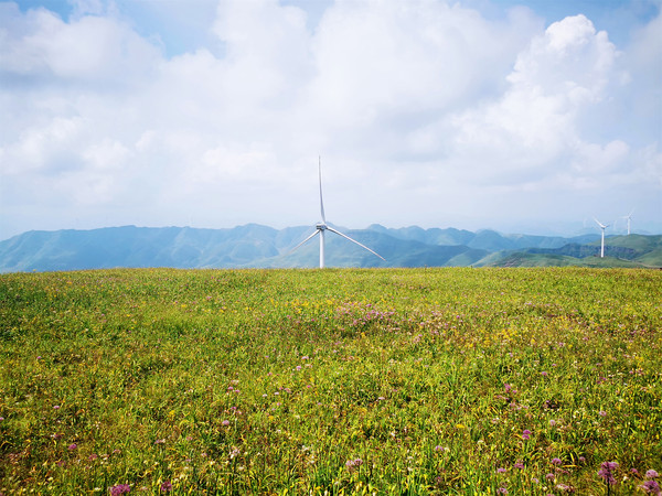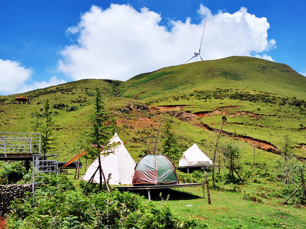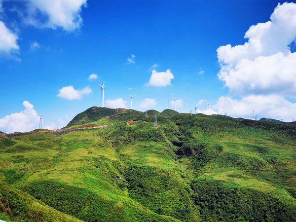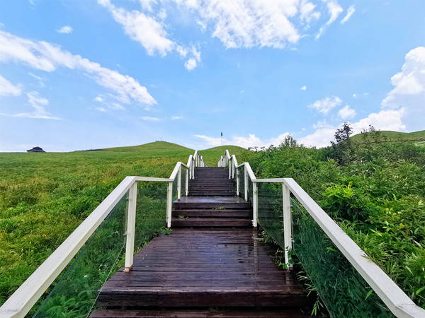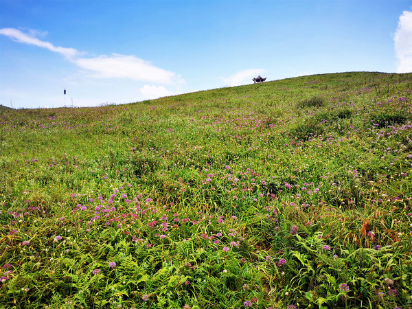 自驾前往乌蒙大草原,又称“坡上草原”,海拔在2000米以上,最高海拔为2857米,是贵州海拔最高、面积最大的天然高山草场,年平均气温11.1℃,气候凉爽怡人,是休闲避暑的好去处,即使在最热的七八月,在山上也能感受到丝丝清凉。不像北方草原那般“一马平川”,这里一望无际的高原草场,沿着山头的坡度向远方蔓延,直通云海,起伏度不大,但形状并不规则,远远望去延绵起伏,碧野万顷,绿意盎然,非常有层次感,极为壮阔。我们一路自驾随着盘山公路前行,起伏弯曲的公路就像长龙在山谷、坡头、草原盘旋飞舞,以曼妙的身姿划出一条条不规则的弧线,每一次的转弯,你都能看到不一样的风景,草原上随处可见散养的牛羊成群,它们经常“拖家带口”,休闲地在山坡头漫步,或是懒懒趴倒晒着太阳,间或低头享受着青草的美味,不时甩动着尾巴,一台台新安装的风电机组迎风起舞,风车飞转,它们是如画风光的灵动点缀,好像在欢迎着来自远方的宾客,近在咫尺的云朵,仿佛来自宫崎骏的漫画世界,天池碧波荡漾,清澈见底,是贵州海拔最高的湖泊,也是整个乌蒙大草原的点睛之笔,犹如瑶台坠落晶莹剔透的碧玉,优雅自然地镶嵌在这片绿毯上,天池是西南地区最为独特的高原湖泊,因彝族同胞历来就喜欢称有水的地方为“海子”,这里也被称为“长海子”。虽然已经过了野花怒放的季节,但漫山的绿依然养眼,微风习习,我们俯瞰绵延峻岭,仰望旋转风车,在草原上肆意奔跑,放着风筝,与牛羊嬉戏,大口呼吸着野草芬芳的新鲜空气,体验高山草原的惬意,用心感受只有19°C的夏天。