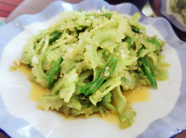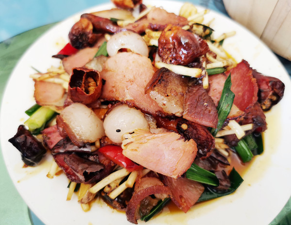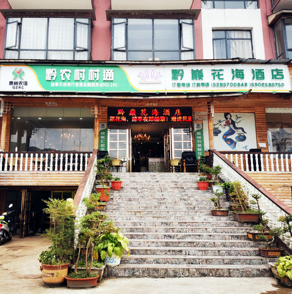 出景区没多远有几家农家乐,我们随意选了其中的黔巅花海,菜品味道不错,土豆饼的做法很特别,蒸腊肉摆盘精致,看上去晶莹剔透,超级有食欲。