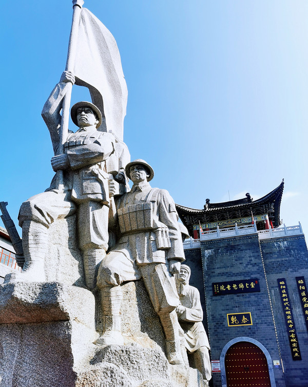 昭通是云南通向四川、贵州的门户,中原文化进入云南的重要通道,中国著名“南丝绸之路”要冲,素有“锁钥南滇、咽喉西蜀”之城,雍正九年云南总督提请皇帝将乌蒙府改为昭通府,昭通古城多为清朝建筑,也有民国和法式建筑,曾是历史上的“会馆之都”,形成了丰富的清代中国古建筑群落,核心区以辕门口为中心,老城有四门,东为抚镇门,南为敉宁门,西为济川门,北为趣马门,镇署衙门位于滇军共赴国难纪念广场,是当年治理昭通的最高行政机构,只是不再开放,不知院落里锁着怎样的故事,“共赴国难”四个大字透着一股莫名的悲凉,长长的街巷,牌坊一面连着陡街,一面通向抚镇门,并没有设为步行街,车水马龙,原住民和游人混杂在一起,颇有人间烟火味,青石板路已经被踩得锃亮,感觉可以照出人影,阳光直射下感受到的是纯粹的热烈,古城依然原生态,随处可见本地老人坐在广场上晒着太阳,还保留着些许古老的手工艺店铺、铁器铺子、竹编小店等等。