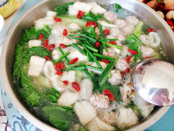 晚上在凤池园附近吃野菜豆米肉圆火锅,实在是太物美价廉,人均二十出头,汤汁很好喝,豆米很软很糯,肉圆新鲜猪肉手工制作,吃起来很香,最奇特的是那些野菜,很多都不认识,自助随便拿,在汤里稍稍烫熟,入口鲜嫩,一不小心实现了野菜自由。