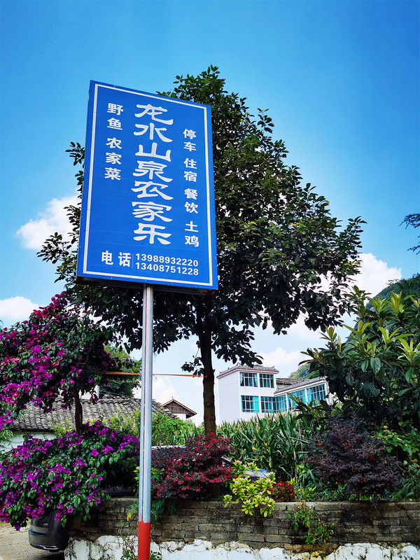 在东门停车场偶遇当地农妇,热情邀请我们中午去她家吃饭,看她淳朴,于是留下联系方式,待我们快出景区时让其先炖上土鸡汤,也没收我们押金,两口子就忙活开了,忙完还开着摩托车来给我们带路,村子就在景区旁,自家小院取名龙水山泉农家乐,还真有个泉眼,泉水冰凉,土鸡汤炖煮得非常入味,虽然只是几个小菜,但厨艺不错,味道都很好,两口子人也很实在,小院打理得干干净净。