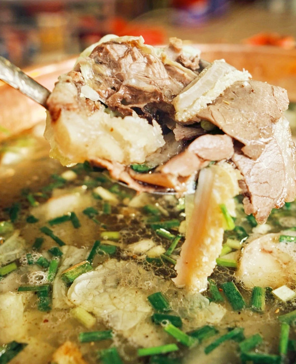 到了六盘水,一定要来一碗羊肉粉开始元气满满的一天,黔北以遵义羊肉粉出名,黔西则是六盘水羊肉粉最为人津津乐道,满大街的羊肉粉店宣告着当地人对它深深的爱。醇厚的羊汤加上香到极致的油辣椒,吃过的人一想起来就下意识地吞咽口水,一筷子爽滑的米粉,一片鲜美的羊肉,紧跟着喝上一口热乎的羊汤,就是大写的满足,很多羊肉粉店还会提供自家腌制的酸菜、泡酸萝卜、泡菜等小菜,可以根据自己的需要加一些,会让这碗粉在鲜美之外,再增添一层酸爽。