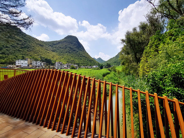我们入住的兴义景棠度假庭院是当地必打卡的网红民宿,出门不远就是民族风情浓郁的布依族古寨——纳灰村,民宿采用新中式装饰风格,做旧门板、石磨茶几、花纹地砖、水墨挂画,进门就是满眼的花草多肉,水台更是吸睛,拥