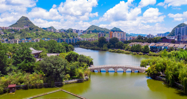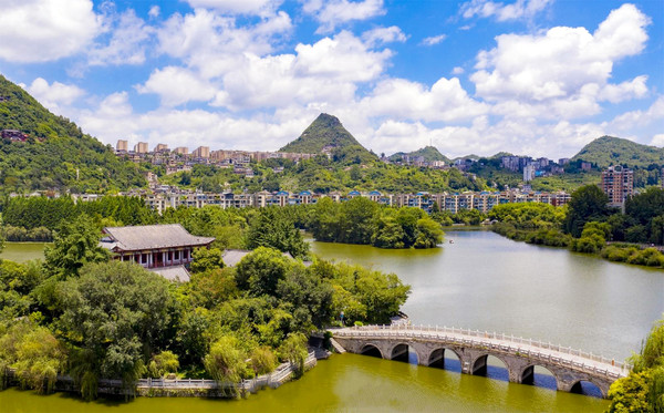 下午来到地处磅礴乌蒙的六盘水市,市名由最初下辖的六枝、盘县和水城三个区域的头一个字组成,夏季的平均温度不超过19℃,蓝天白云常相伴,峰丛湿地绿相融,气候资源得天独厚,冬无严寒、夏无酷暑,气候凉爽、舒适、滋润、清新,紫外线辐射适中,2005年被中国气象学会授予“中国凉都”称号。我们就住在水城古镇旁的维也纳酒店(更推荐不远的六盘水贵州饭店),酒店休息好了随时都可以去逛逛,古镇青砖灰瓦,倚靠凤池园而建,原古城始建于清代雍正十年,距今将近300年,它的形状就像一片荷叶漂浮在水面上,故有“荷城”之称,但现在的古镇完全是围绕“一水绕两核”、“ 七桥串古今”新建的,几乎找不到什么历史的痕迹,穿行其中,随处可见的葱郁林木攀爬成了天然“背景墙”,倒是可以在清幽的小巷中享受夏日慢时光,夜幕降临后倒是在灯光的映衬下比白天更美,各式美食排档出来摆摊后也是更加热闹了。