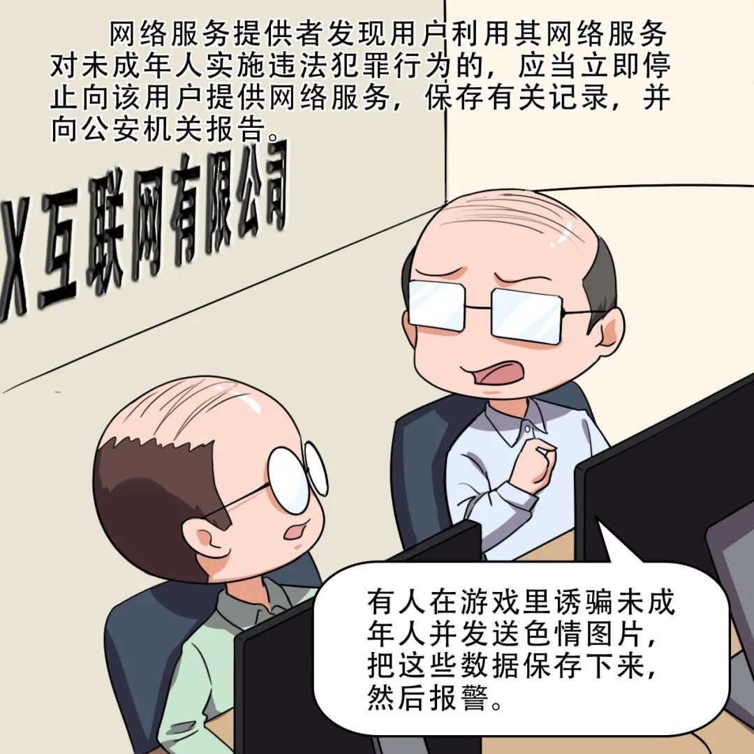 网络服务提供者发现用户利用其网络服务对未成年人实施违法犯罪行为的,应当立即停止向该用户提供网络服务,保存有关记录,并向公安机关报告。