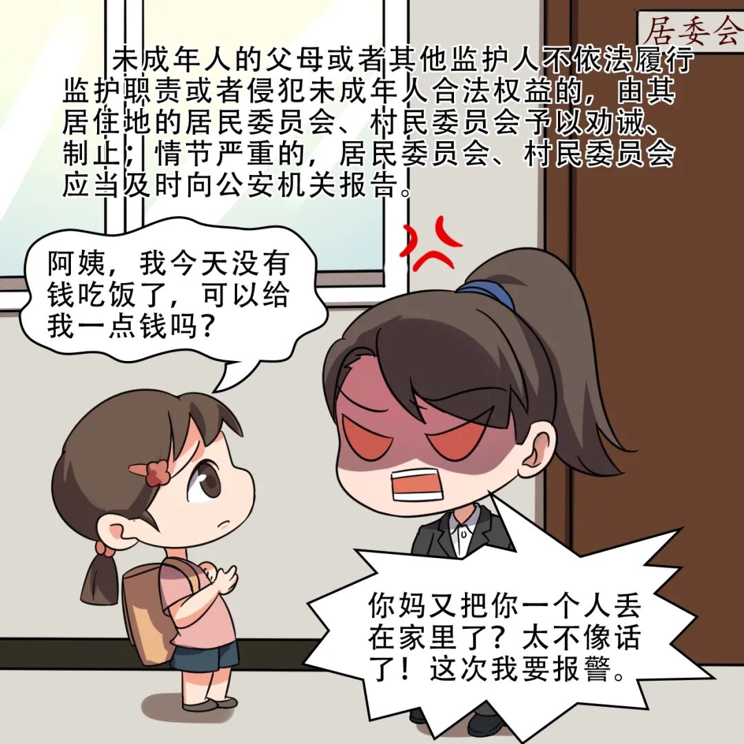 第一百一十八条未成年人的父母或者其他监护人不依法履行监护职责或者侵犯未成年人合法权益的,由其居住地的居民委员会、村民委员会予以劝诫、制止;情节严重的,居民委员会、村民委员会应当及时向公安机关报告。