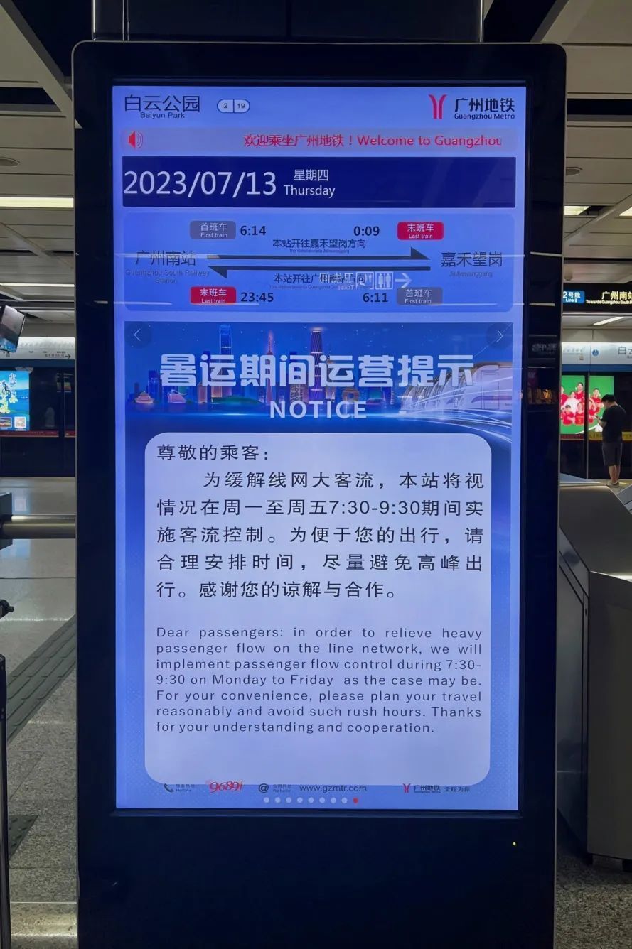 暑运期间,车站会结合客流情况,采取限流措施,且限流措施将视情况有所变化。请小伙伴们留意车站的广播和宣传告示,提前做好规划,预留充足出行时间。