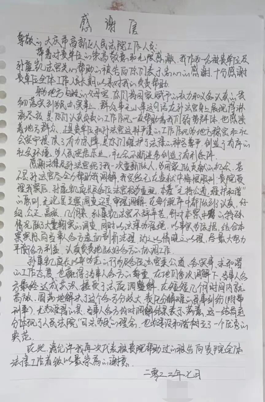 如今,小丽的心理障碍正在后期康复中,精神状态也持续好转。她表示,之前是自己没打开心结,太冲动,但经历这件事后,感觉自己真正长大了,今后一定严以律己做好人,努力回馈社会,不再让父母操心。为此,她还手写了一封感谢信,表达对法官的感激之情。她告诫广大未成年人,千万不要早恋,做事要三思后行,否则将后悔莫及,甚至锒铛入狱、毁掉前程。