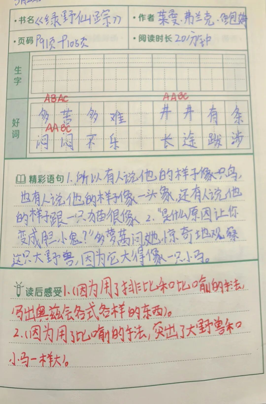 在阅读的过程中,每每遇到那些灵动的词语,那些直击心灵的语句,或是让人醍醐灌顶的对话,孩子们也总是忍不住拿起笔将它们装进自己的阅读“百宝箱”。