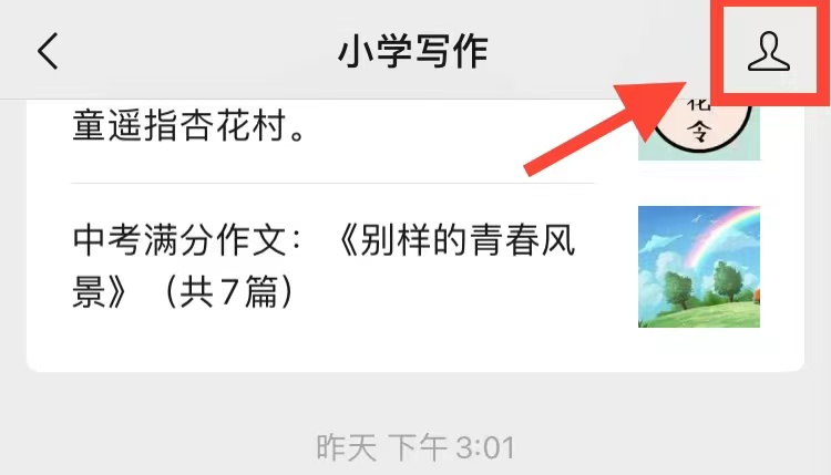 1、打开“小学写作”公众号,点击右上角小人按钮