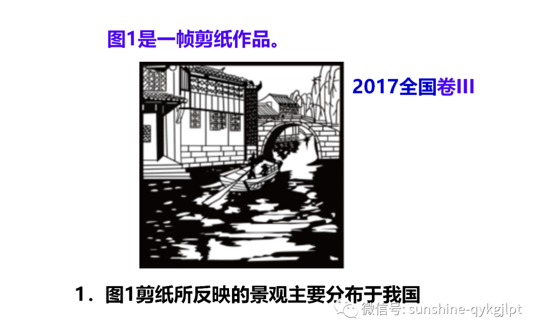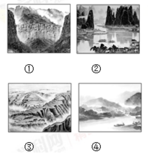 中国山水画家多师法自然,其作品往往具有明显的地域特征。下图为我国四幅山水画作品。读图回答下列各题。