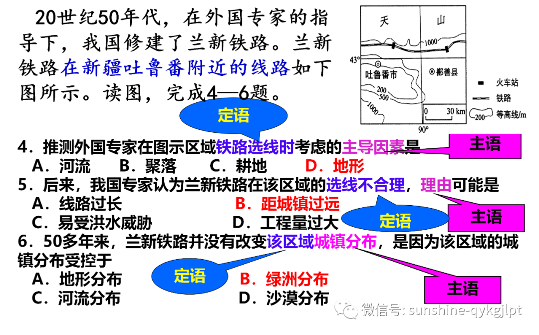 3.50多年来,兰新铁路并没有改变该区域城镇的分布,是因为该区域的城镇分布受控于( )