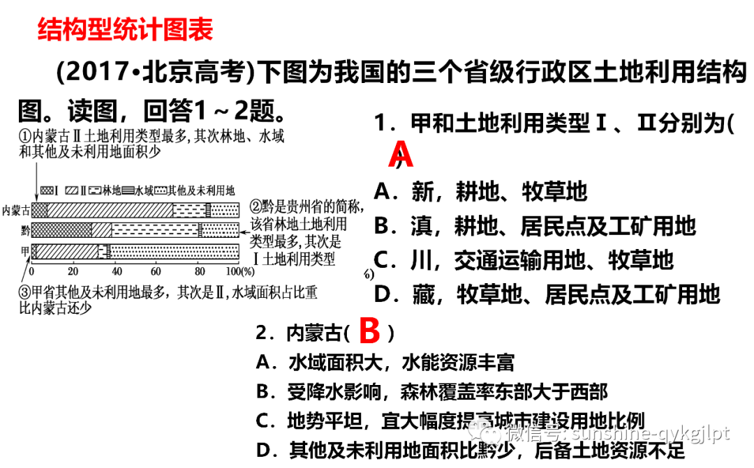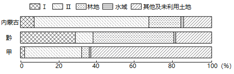 下图为我国的三个省级行政区土地利用结构图。读图,回答下面小题。