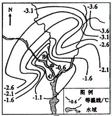 图为北半球某平原城市冬季等温线分布图,读图回答下列各题。