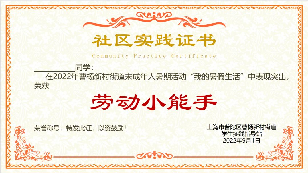 一系列的暑期活动丰富了孩子们的暑假生活,加强了居民之间的沟通交流,通过多种形式提升孩子们的综合素质,传达健康、阳光向上的生活理念,共建和谐美丽、健康幸福的美好曹杨。