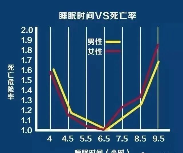 晚上睡多久直接影响你能活多久。成年人睡眠时间在6.5-7.4小时之间,死亡率最低,而少于4.5小时或高于9.4小时,死亡率明显增高。